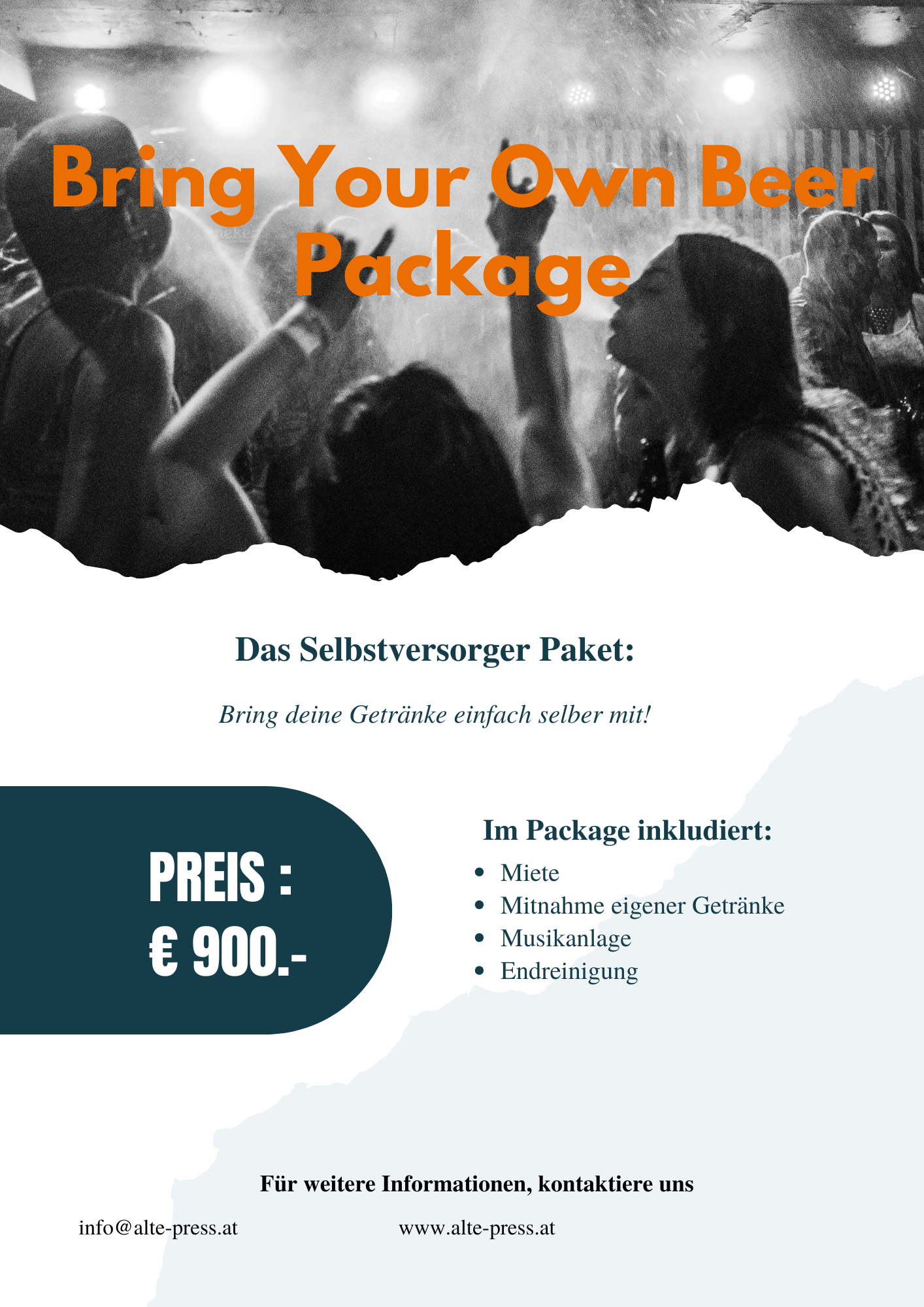 Wir freuen uns, Dir unser exklusives Bring Your Own Beer Package vorstellen zu dürfen. Wenn Du eine unvergessliche Feier mit Deinen Freunden, Kollegen oder Familienmitgliedern planst, bist Du bei uns genau richtig.
