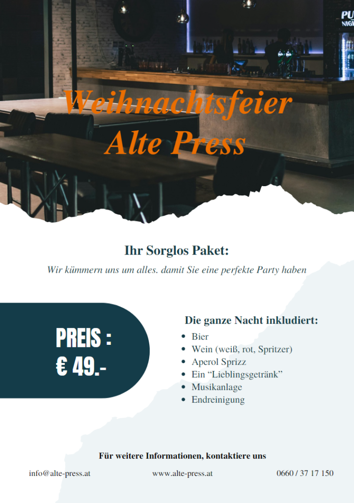 Ihre Weihnachtsfeier in der Steiermark: Feiern in der „Alten Press“